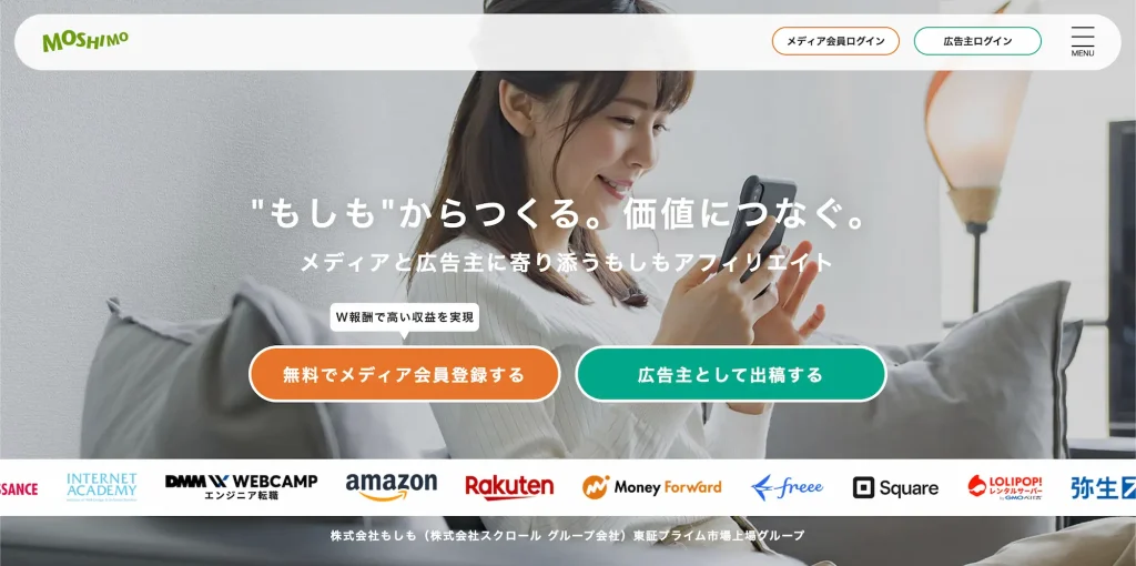 もしもアフィリエイトは、「がんばる個人のためのアフィリエイト」をスローガンに掲げるASP。