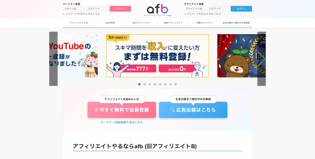 afbは美容・健康系ジャンルに特化した強みを持つASPです。