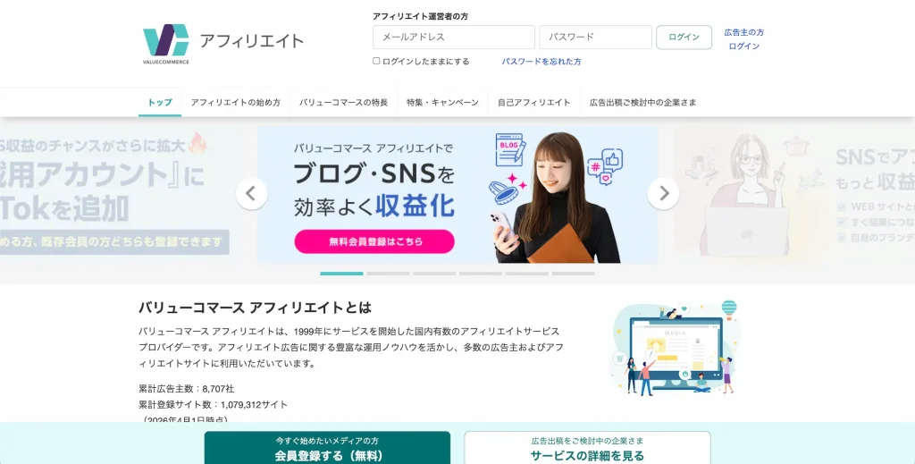 バリューコマースの強みは、ヤフー関連サービスのアフィリエイト。