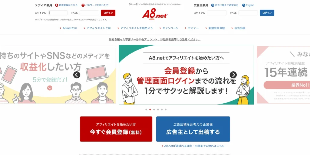 ⑤A8.net ── 国内最大手、案件数No.1のASP